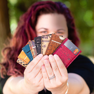 The card wallets fit perfectly in your purse, pocket, backpack or on the back of a phone (optional adhesive sticker included)