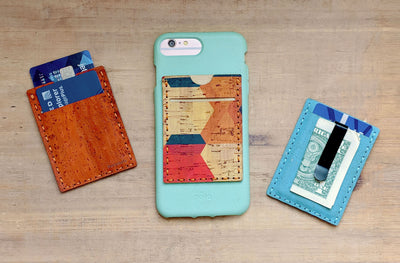 Beautiful, vegan, eco-conscious Cork Fabric card wallets are hand crafted in California, USA. Patented.